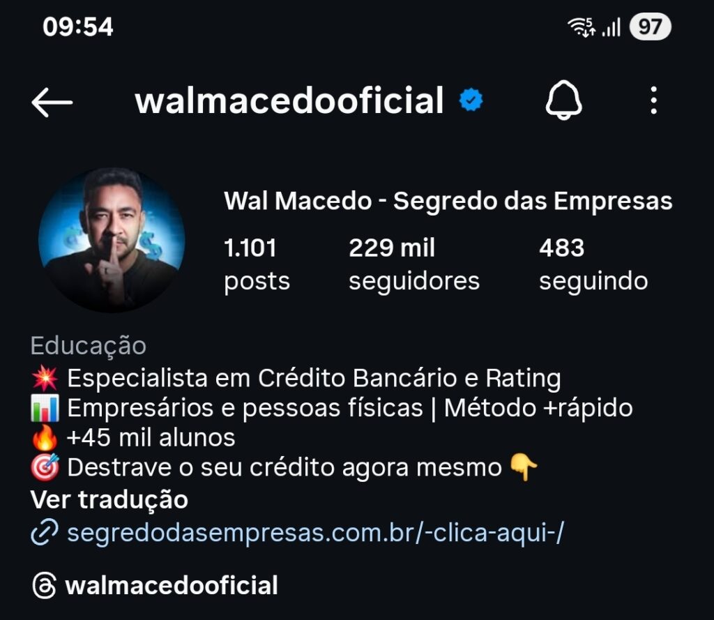 Gerente de Banco, Especialista em crédito, Wal Macedo já treinou mais de 22 MIL pessoas em todo o Brasil e hoje soma mais de 410 MIL seguidores nas redes sociais.