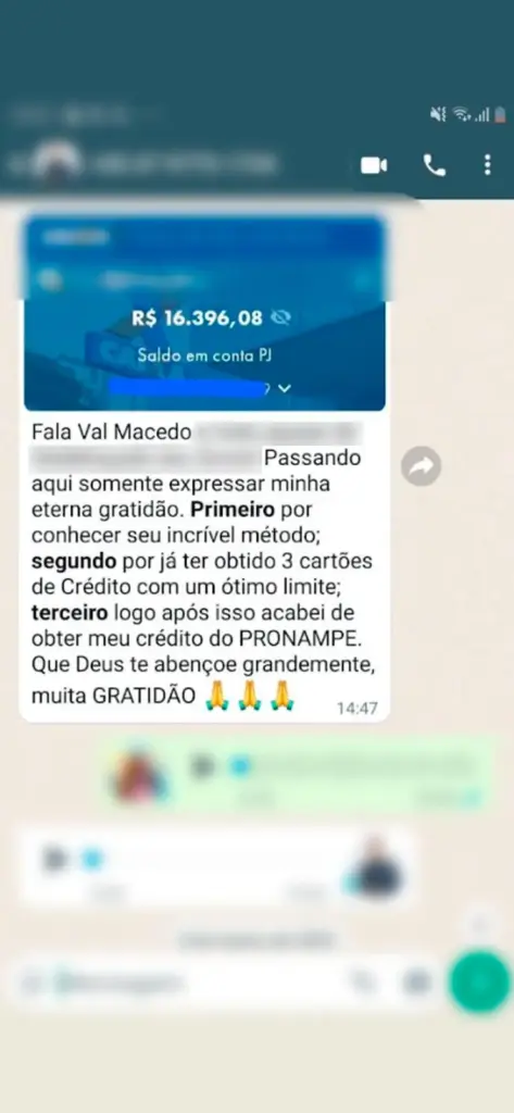 “Depois de 6 meses sendo negada, usei as estratégias e consegui uma linha de R$ 150k que salvou minha empresa na pandemia.”